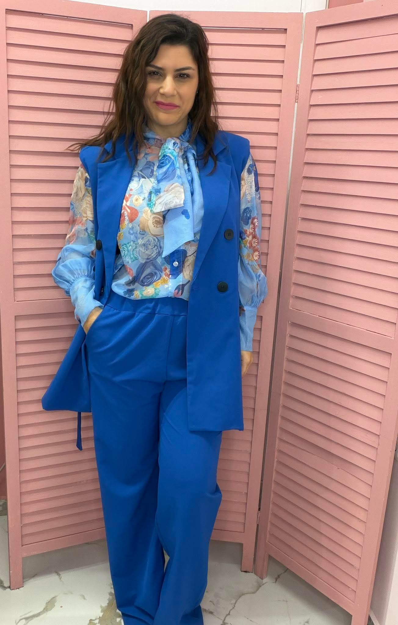Κουστούμι σετ με αμάνικο γιλέκο – μπλε ρουά