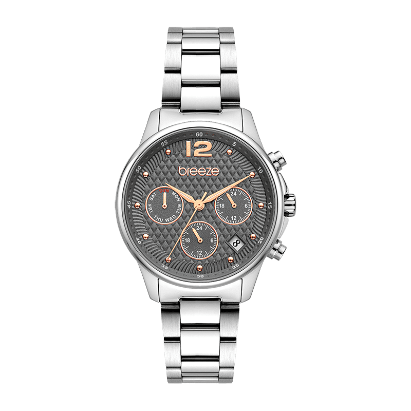 *Αναλογικός μηχανισμός quartz ακριβείας με ενδείξεις 1ης και 2ης 24h ώρας, ημέρας και ημερομηνίας